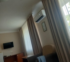 Хорошая гостиница за достойную цену. Номер с хорошим ремонтом и мебелью. Плотные полотенца, телевизор, холодильник, кондиционер. Всё чисто. Единственный минус ржавая вода в санузле.