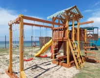 Очень уютный пансионат. Есть своя территория с пляжем и домиками в 2 этажа, по 2 номера на этаж. Кровати, матрасы и бельё есть. Хорошее расположение — рядом большой аквапарк, есть где поесть и погулять вечером с семьёй.