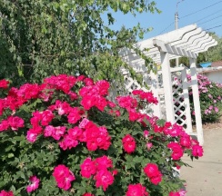 Много где побывали вкл. заграницу, но здесь наши души остановились и уже третий год подряд ездим только сюда. Приемлемые цены. Сотни кустов роз заполняют весь гостевой двор и улицу. Прекрасные номера и дома со всеми удобствами и техникой, с балконами и отзывчивым внимательным персоналом. Комфортный трансфер и своя отличная столовая с разнообразным вкуснейшим меню. Все это в центре Голубицкой, с развитой инфраструктурой. Пляж песок и ракушечник плавный заход в море шезлонги бесплатные. Зона барбекю и все по домашнему.В общем "БРАВО"!!!. 👏 нет слов. Хочется туда ещё и ещё. Спасибо за комфорт и удобства. 👍👍👍
