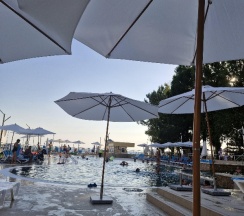 Из плюсов: хорошие номера, отличное питание по системе "шведский стол", собственный галечный пляж с лежаками, большая территория с деревьями, площадками для игр.