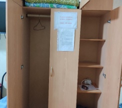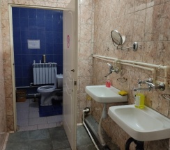 Имеются общие туалет, сауна, душ, постирочная, буфет с холодильником и электрическим чайником. Администратор любезно разогрела нам ранний завтрак в микроволновке, в комнате для персонала. Спасибо🙏💕.