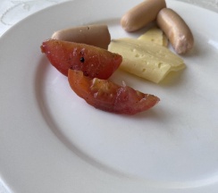 Понравилось: Завтрак-буфет с 7 до 10. Мы и ещё пара постояльцев завтракали около 8 утра. Стол был полон холодных закусок. Из горячих блюд понравились блинчики, запечённые овощи и сосиски. Отличные свежайшие местные творог и кефир.