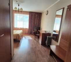 Понравилось: Отель расположен недалеко от ж/д станции. Телефоны такси есть на табличке возле выхода из здания вокзала. Стоимость поездки до отеля в январе составила 250 рублей. Рядом с отелем есть магазин Магнит, краеведческий музей, хорошее кафе Речное. В отеле есть ресторан, порции небольшие, но все вкусно. Завтрак был включен, но это не шведский стол. Каша, омлет или запеканка, хлопья, чай, кофе, молоко. Завтрак хороший и вкусный. Номер просторный, удобная кровать, есть телевизор. В самом отеле есть сауна с комнатой отдыха (без бассейна). Можно купить некоторые сувениры.