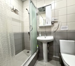 Односпальная кровать, душ и туалет,фен, телевизор, холодильник, эл.чайник в номере