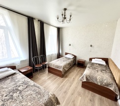 3 односпальные кровати, душ и туалет, фен, телевизор, холодильник, эл.чайник в номере