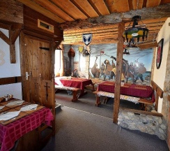 В кафе отеля на всю стену красивая картина - практически фреска. Вообще весь интерьер и обстановка - очень атмосферно. Номер в стиле карельской избы - круто реализовано!