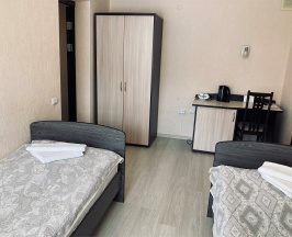 Wi-Fi , телефон, фен, две односпальные кровати, холодильник, санузел, ванная комната, банные полотенца,гигиенические средства, косметические средства