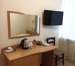 Приятная гостиница: вежливый персонал на ресепшене (был поздний заезд и выезд, а в последствии потребовался ранний выезд, расчет по факту выезда), чистый и просторный номер с хорошей звукоизоляцией, телевизор без кабельных каналов, чайный и гигиенический наборы в достаточном количестве. Рекомендую.