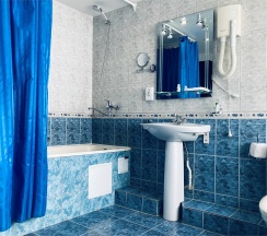 WiFi,телефон,фен, двухспальная кровать, холодильник, санузел, ванная комната, банные полотенца, гигиенические средства, косметические средства, тапочки, халат.
