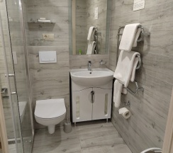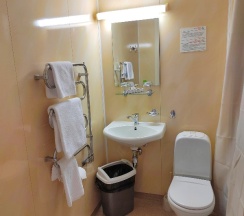 Одноместный номер - чистый, хорошая постель, есть чайник и кружка для чая, маленький холодильник. Как правило, в таком случае в номере подают питьевую воду и чай/кофе, но здесь этого нет, также как нет салфеток, фена, по запросу на всю гостиницу 2 фена очень слабых((( туалет и душ чистые, посторонних запахов нет. Завтрак - шведский стол , еда отличная- сырники, блины, омлет, сосиски вкусные, остальное не пробовала, но есть минус - персонал слишком заметен, кофемашина плохая, не предусматривает самообслуживания, не вовремя пополняют блюда, плохо следят за подогревом блюд, несвоевременно пополняют столовые приборы