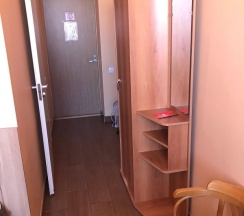 Хорошая гостиница в своём ценовом сегменте. Брал одноместный номер, есть всё, что необходимо, в том числе холодильник. Особенно понравилось плотные тёмные шторы. В коридоре кулер, микроволновка и чайник. Из недостатков могу отметить скользкий пол в санузле, отсутствие кондиционера и плоховатую шумоизоляцию.