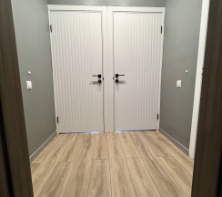 Полы с подогревом. Хорошие полотенца. Сантехника выше всяких похвал. Много места для хранения одежды.