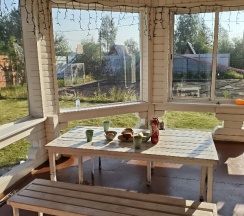 Хорошая база отдыха. Закрытая территория, детская площадка, спортивная площадка. Хорошие соседи. Нет комаров. Есть станция Алиса. Интернет, конечно, не очень. Дом полностью готов к отдыху. Сауна, посуда, все для отдыха. Шикарные восходы и закаты. Очень хороший администратор Ольга. Каждый день убирали мусор у дома. всегда интересовались, все ли хорошо. Остались приятные воспоминания.