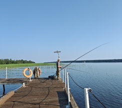 Мы с семьей снимали дом "Корабль" морская тематика,как раз для нас любителей рыбалки ,кстати в аренду можно взять катер или лодку)
