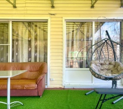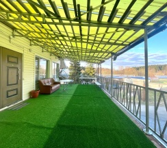 Номер большой, просторный с выходом на террасу. С террасы увидели Ретро поезд, виден кусочек ж/д. Большая парковка. До сетевых магазинов 10 мин пешком.
