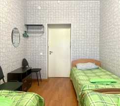 Четырехместный номер с односпальными кроватями, по вашему запросу можем сдвинуть кровати. Личный санузел с душем и туалетом в номере. Телевизор, бесплатный Wi-Fi.