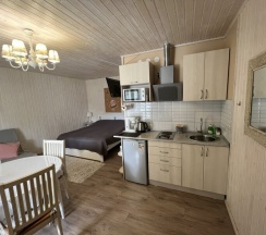 Семейный номер студи 25 кв.м с отдельным входом с улицы и своей террасой. В каждом номере своя кухня, обеденный стол, шкаф, санузел, двуспальная кровать и раскладная диван-кровать. Возможно размещение 1-4 гостя.