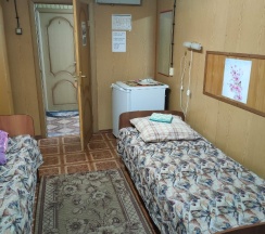Одноместный номер без удобств 600 рублей. По факту в номере два спальных места. Чисто, аккуратно, спокойно. Есть телевизор, холодильник и окно. На территории работает столовая. Недалеко от вокзала. Из минусов: слабая изоляция между номерами, но меня это не напрягало - проживающие адекватные и не шумят. Однозначно рекомендую.
