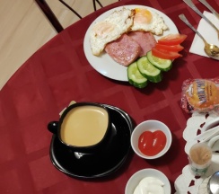 Чисто, уютно, завтрак включён в стоимость. Бельё свежее. Персонал доброжелателен и отзывчив. В номере чайник и вода, необходимые столовые приборы. Единственный минус - картонные двери, из-за чего слышимость происходящего в коридоре выше нормы, но спать никто не мешал, отдохнуть удалось.