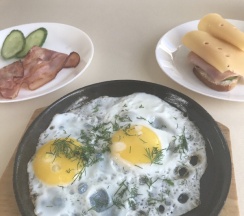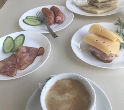 Хороший завтрак (каша, колбаса, сыр, масло, чай). Если без претензий на супер-люкс, то вам сюда.