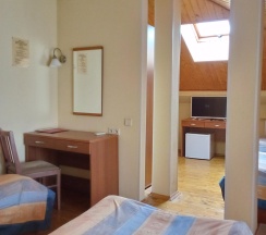 Просторный номер с большой двуспальной кроватью. В номере есть зона отдыха с диваном. Имеется собственная ванная комната.