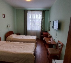 Соответствует заявленному. Для такого маленького города очень приличный номер. Приветливый обслуживающий персонал. Все необходимое в номере есть, чисто и спокойно. Кафе в гостинице с вменяемыми ценами и отличным обслуживанием.
