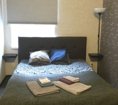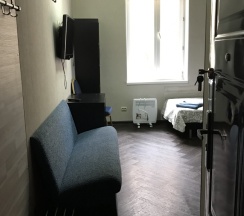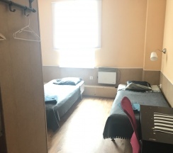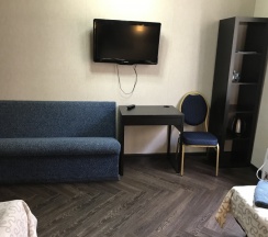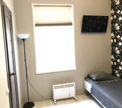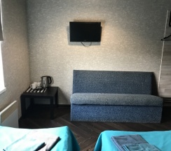 Проживание комфортное для короткого проживания, все очень простенько, но спали комфортно. В санузле маленькая сушилка для вещей. Кровати односпальные, маленький столик с чайником, тв не включали.