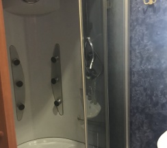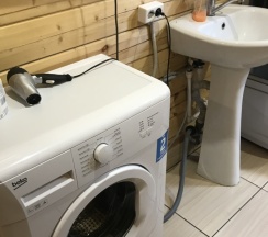 - В ванной теплый пол и шатающая плитка, мыльно-рыльные принадлежности присутствуют