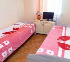 2-х местный номер с необходимым набором мебели, электрический чайник,телевизор,холодильник, отдельный санузел с душевой кабиной.