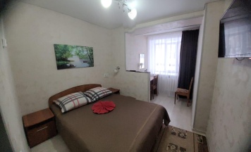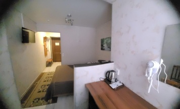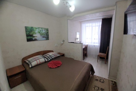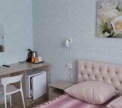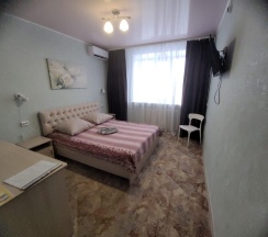 Двухместный номер повышенной комфортности с одной двуспальной кроватью. Удобства находятся в номере. В номере есть телевизор, Wi-Fi. По запросу предоставляются фен, утюг, фумигатор, вентилятор, столовые принадлежности.