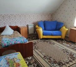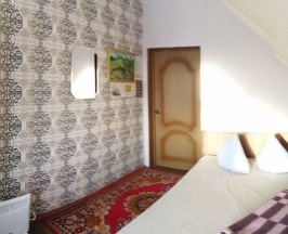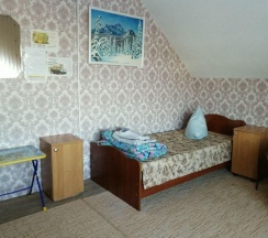 Гостевой дом рассчитан на 13 -16 спальных мест, имеются комнаты с двуспальными и односпальными кроватями. На каждом этаже расположен туалет, на втором есть общая душевая.