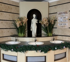 В корпусе мраморные лестницы. Отличный бассейн, ходили туда каждый день. Вкусно кормят. Шустрый wifi, в коридоре ловит отлично, в комнате приходится ловить сигнал. Билайн ловит хорошо.