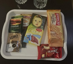 Плюс чайный набор, бонусом, я был удивлен, даже теперь на утро есть кофе/чай и чоко-пайка 😄