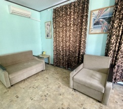 Чисто, зелено,уютно, отзывчивый персонал, все,что нужно для комфортного проживания: просторные светлые комнаты, холодильник, кондиционер, чайник, телевизор, смена белья и полотенец, уборка номеров. Есть кухня, стиралка, бассейн. Рядом магнит, пятёрочка, пляж в пешей доступности