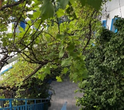 Рядом с морем, по пути много кафе и магазинов, аттракционы. В самой гостинице есть бассейн и мангал, номера оборудованы самым необходимым. Ничего лишнего. Есть кондиционер. Ооочень много винограда по всей территории. Вкусно и красиво