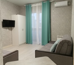Компактная евродвушка в новом ЖК «Анаполис», в 300 м от моря, пляж Варваровская Щель. Все привычные удобства и техника на кухне, стиральная машина, кондиционер, фен, утюг, посуда, Wi-Fi, комплекты полотенец и белья для внутреннего пользования — в наличии. Уютная, новая. Окна в пол — смотрят на красивые виды, гору с можжевельником и слева море. Двуспальная кровать с ортопедическим матрасом в спальне. В гостиной диван и кресло-кровати. Вмещает от 2 до 6 человек.