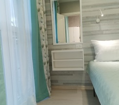 МЕБЕЛЬ — двуспальная (шир 160см) либо 2 односпальные (по 80см шир) кровати с ортопедическими матрасами, шкаф, тумбы прикроватные, журнальный столик, пуфы, прихожая с вешалкой;