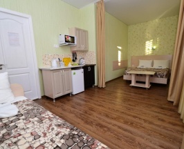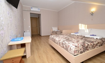 Понравилось: Самый лучший отдых и отель! В номерах есть все, хозяйкой Олей все продумано до мелочей! Спасибо Вам большое за это! Очень чисто в номерах и во всем отеле. Есть огромный бассейн, кухня на которой можно готовить самим и есть кафе, в котором можно покушать очень вкусно и дешево, еда разнообразная и напитки. Есть огромная детская зона, зона для загара, взрослая зона, мангальная зона для вечерних шашлыков. Вечером проходят игры для детей и мероприятия для взрослых. Есть свой трансфер на море, возят на выделенный пляж где очень чистое море, маяк для эпичных фото, дельфинарий и офигенная устричная. Спасибо Вам большое за гостеприимство! Очень не хотелось от вас уезжать.