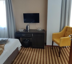 Ложка чайная уже грязная лежала как заехали. Одно полотенце большое было в пятнах , маленькое было дырявое. В номере прибрали , а почему чай не положили новый мы же две ночи оплатили могли бы и добавить он же входит в стоимость а я его выпила, а новый не добавили. Парковка перед отелем маленькая очень ладно нам место досталось. А и да кстати когда второй раз приходили прибирать ложку так и не поменяли. Завтрак кстати спасибо большое ресторану очень вкусный был. Выбор большой очень даже. Кофе машина обалденная, кофе вкусный , еда вкусная, персонал вежливый. Стол где стоит чайник не удобно как кипятить когда возле стола нет розетки.