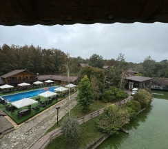 Ездили сюда каждые 6 лет в июне большой компанией. За последнее время просело место - нужен уход и внимание. Еда вкусная, но ждать придётся долго, персонал раз через раз приветливый, за 3 дня видела часто поджатые от недовольства губы, бассейн хороший, но кусочки плитки отвались, территория хорошая - деревья, уточки. Номера хорошие, но дом люкс требует ухода - на крутой лестнице сыпятся перила и детям неудобно подниматься, все руки в деремянной крошке, туалет на первом этаже плохо открывается- попав туда, можно пол часа сидеть и ждать спасения от мимо проходящего товарища. Детская комната тихий ужас - игрушки в ужасном состоянии, многие сломаны и старые, в пульте от телевизора нет батареек. Нет Wi-Fi!!! Сеть ловит только мтс и если у вас его нет, то вы без связи с миром. Номера возле бассейна лучше с детьми не брать, потому как другие люди, могут после 22.00 врубить музыку и шумно отдыхать.