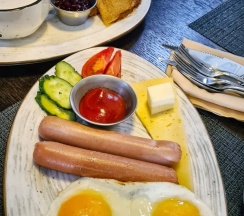 Завтраки на выбор, очень вкусные, порции внушительные. Ресторанчик приятный.