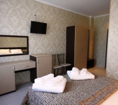 Отличная гостиница, гостеприимный хозяин, сразу предоставил местечко под машину, машина под камерами. Двор чистенький и ухоженный, с бассейном и столиками. Во дворе есть туалет для экстренного решения аварийной ситуации))) чистые номера со свежим ремонтом. Все номера с кондиционерами. Шаговая пятиминутная доступность к морю, рядом в 10 метрах магазин магнит. Мой рекомендансьён