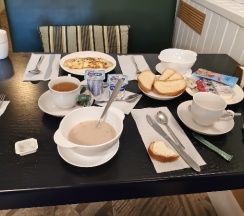 Можно выбрать для себя из меню соответствующее блюдо по вашему вкусу. К назначенному времени был сервирован стол и подан горячий завтрак, при этом уведомление о готовности завтрака пришло в мессенджер по номеру телефона.