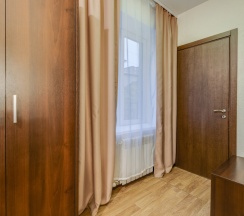 Спальня площадью 14,5 м² оснащена двуспальной или двумя односпальными кроватями на выбор, во второй комнате площадью 8,9 м² организована гостиная зона с диваном и рабочее пространство с письменным столом.