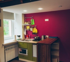 Зато прекрасным плюсом являются мини-кухня (чайник! плитка! микроволновка! посуда! губка с моющим средством!) и санузел (душ великолепен настолько (напор воды, её температура и т.п.), что и не припомню, когда и где я так дУшу радовался, а strannik я- хвастаюсь!- ещё тот!)