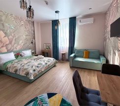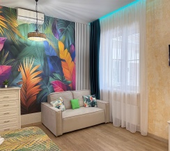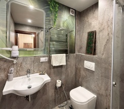 Улучшенный семейный номер рассчитан на 4-х человек. Номер оснащен всеми удобствами для комфортного проживания: прихожая, санузел, фен, косметические принадлежности, кондиционер, телевизор, кухонный уголок: холодильник, чайная станция, микроволновая печь, набор посуды на 4 персоны. По запросу предоставляется детская кроватка.