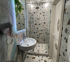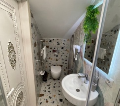 Наше спонтанное путешествие по черноморскому побережью привело нас в Геленджик. На это место наткнулись случайно, отчаявшись, что нигде нет свободных мест, либо какие-то баснословные ценники! Был номер свободный, нас тут же разместили. Номер нам достался не очень большой, знаю, что тут есть и больше, но нам на пару ночей вполне достаточно! Чистые новые номера, отличная ванная комната с прекрасным душем! Есть общая терраса на первом этаже, где можно вечером душевно посидеть за бокалом вина. Также есть терраса и на втором этаже, с утра можно попить чай/кофе. Везде стоят кулеры с водой. Есть гладильная доска, утюг. В номерах во всех кондиционеры. До моря 5 минут пешком. Самый ближайший пляж хороший, чистый! Паркинг есть на несколько машин и на территории дома и рядом много места где припарковаться. Видела тут постояльцев и с домашними животными.