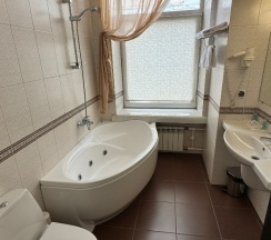 В номере тепло, чисто (разве что кресла и диванчик выглядят пошарпанно, но опять-таки за свою цену это несущественно), новое постельное белье, ежедневная уборка. Телевизор, холодильник - мастхэв. При небольшой площади в номере - три окна. И не тесная ванная, со свежим ремонтом, тоже с окном - это для меня всегда большой плюс.
