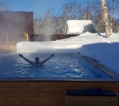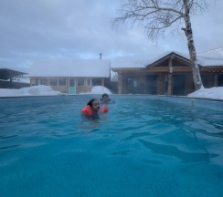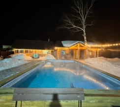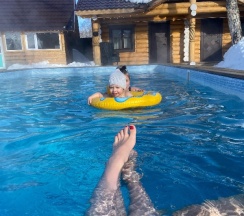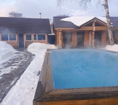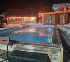 Отдыхали с 24 по 26 ноября.Дои с баней и бассейном.Дом с баней все удобства есть посуда,белоснежный постель,полотенца,чистота и комфорт.Рядом бассейн чистейший и горячий в любую погоду можно плавать.Можно пожарить шашлыки на улицы или в закрытом все есть.Спасибо большое !Хорошо отдохнули!!Ещё вернёмся!