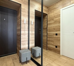 Шикарный ремонт выполнен в современном стиле с использованием качественных материалов. Светлые стены и минималистичный дизайн создают ощущение простора и свободы. Пол выложен паркетной доской, которая добавляет тепла и уюта интерьеру.